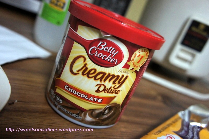 Frost the muffins with the chocolate frosting. (Go easy on them!)