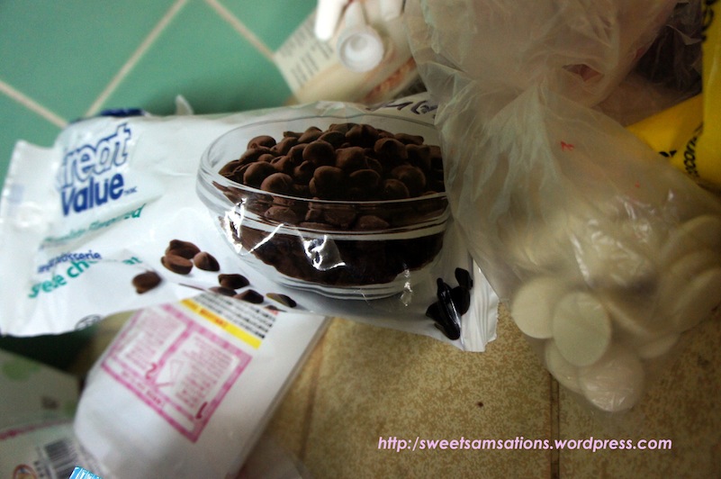 Insert eyes by icing black chocolate chips onto white chocolate chips (All eyes are the same)