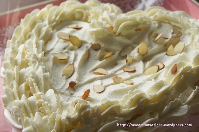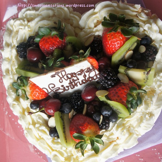 Since it is was Valentine’s Day, [ sorry I’m late! 🙁 ] which was also close to my sister’s birthday, I decided to bake her a heart-shaped birthday cake! Tiara was visiting from Singapore and she complained that the Pavlova cake was non-existent there. Her intense craving for one prompted her to demand request the meringue cake for her birthday. I actually found it odd that she had difficulty finding a Pavlova in Singapore, given that the Singapore-Australia immigration has always been quite significant.