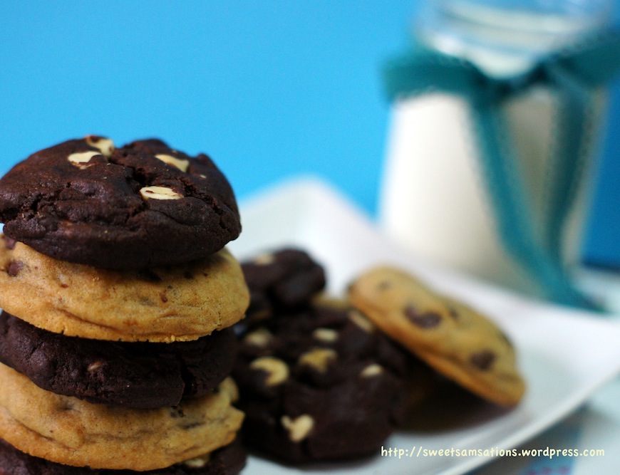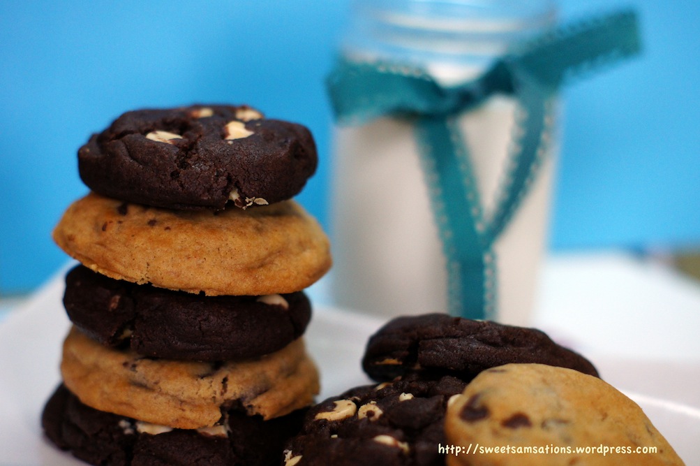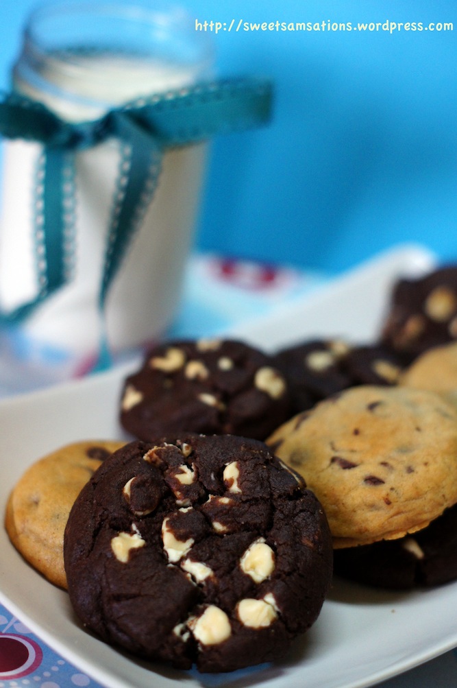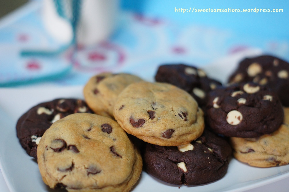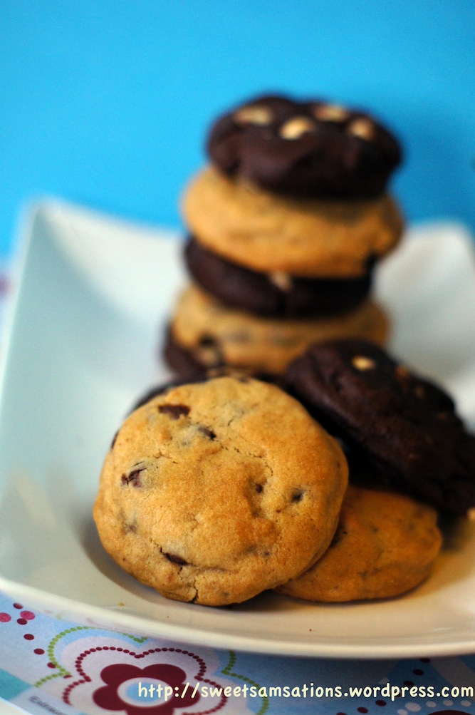 WRONG… Nothing beats baking in an oven that you know best. It was my first time using her oven and I definitely overbaked the cookies. They didn’t seem to brown and appeared quite soft on top. It was only when I removed them that I realized her oven’s heat source came from below!! Thus, the batches made at her house were slightly burnt. Not as fat and chewy as I wanted them to be. Nevertheless, everyone still seemed to love them! My personal preference was towards the milk chocolate chip cookies.. yumm!