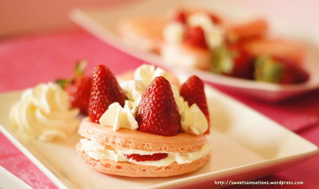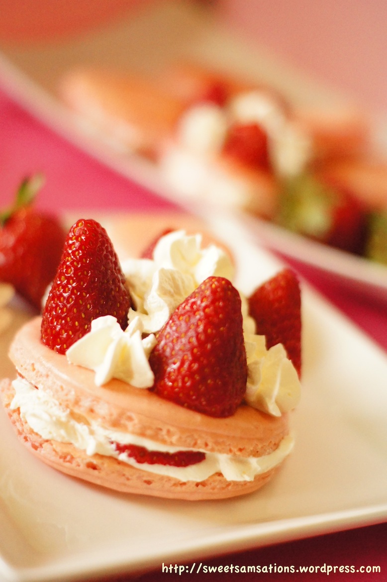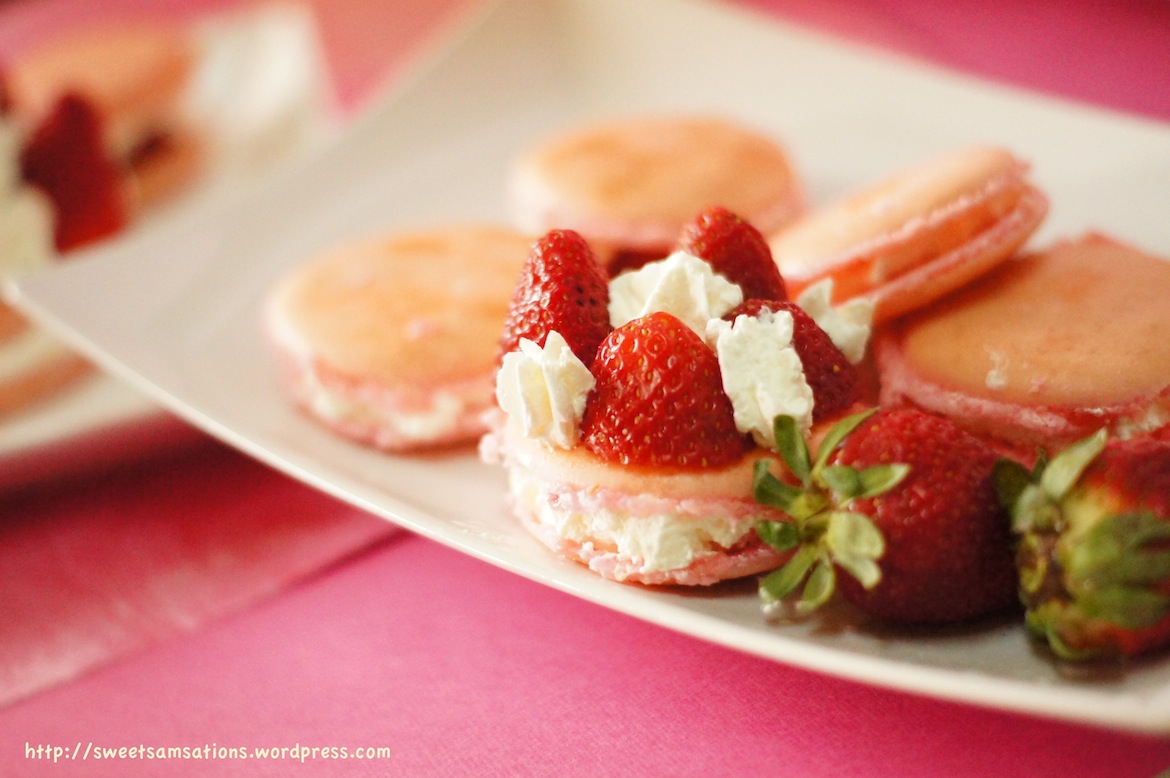 Oh Sam! You’re macarons look delightful! I love macarons, I love all the different flavor combinations, you can do anything with them! I think I will post the ones I just made to that site as well. I wish I could taste yours, I love the idea of the chantilly cream with strawberries. YUM!