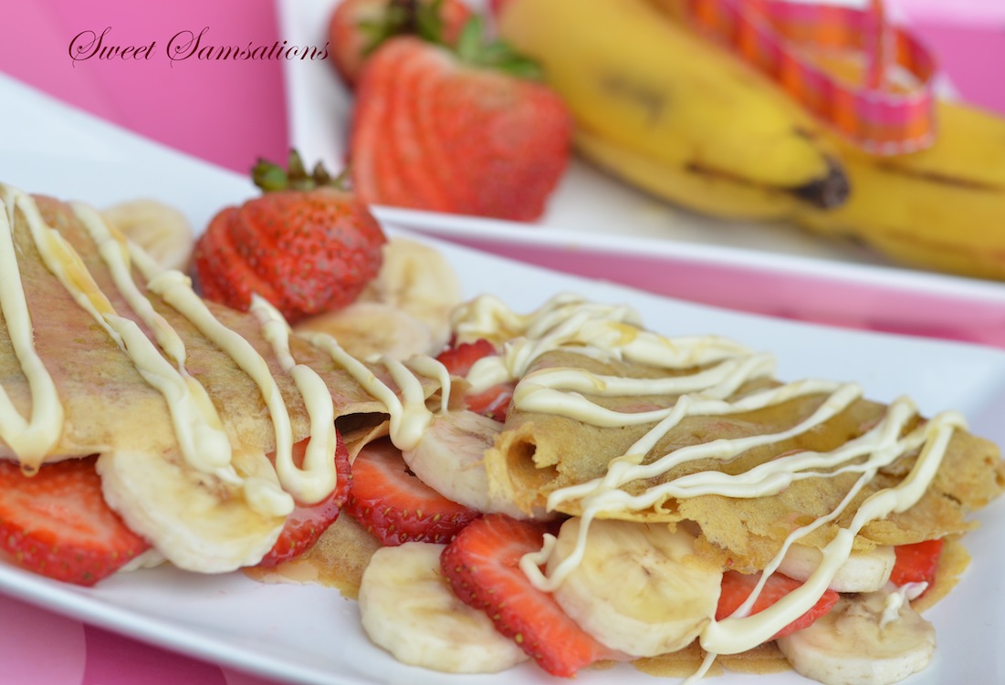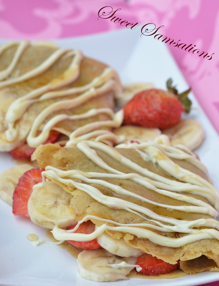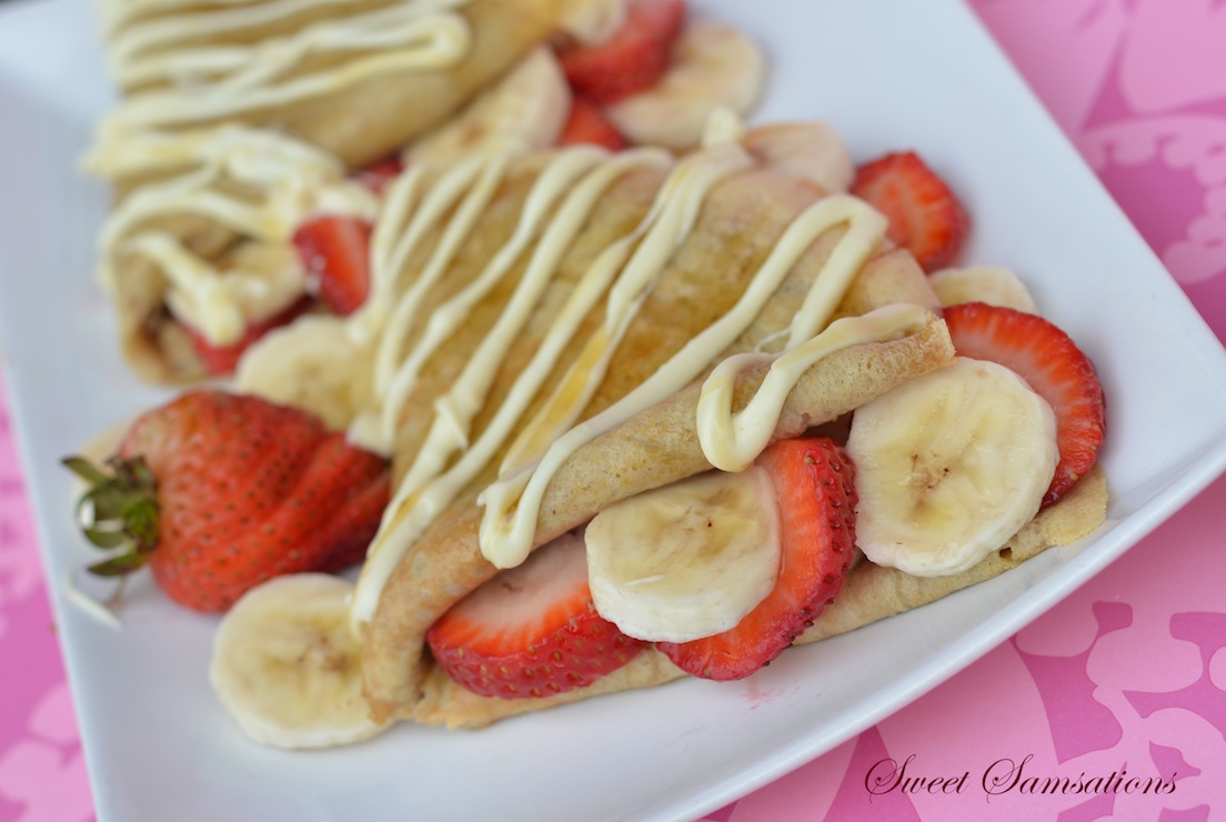 Peanut Butter Crepe with Fruits and White Chocolate Drizzle