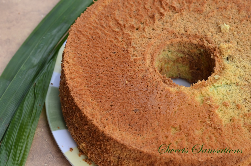 Have you ever had Pandan flavoured cakes before? Pandan is a fragrant leaf mostly grown in tropical areas of Southeast Asia. This is a Pandan Chiffon Cake. However, to add a little fusion, I incorporated the zebra technique which I have been dying to experiment with ever since I saw it on The Diary of a Mad Hausfrau. She definitely has the most creative ideas!