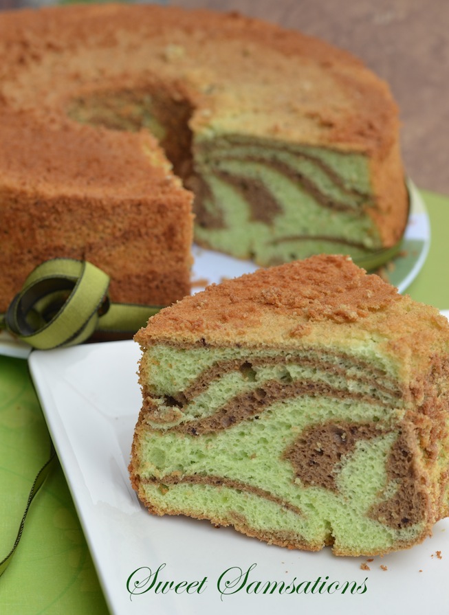 This is absolutely gorgeous Sammie! I love the pandan cake color – always fascinated by it but never tried pandan leaves in my life. I love chiffon cake and your chocolate swirl looks beautifully done!