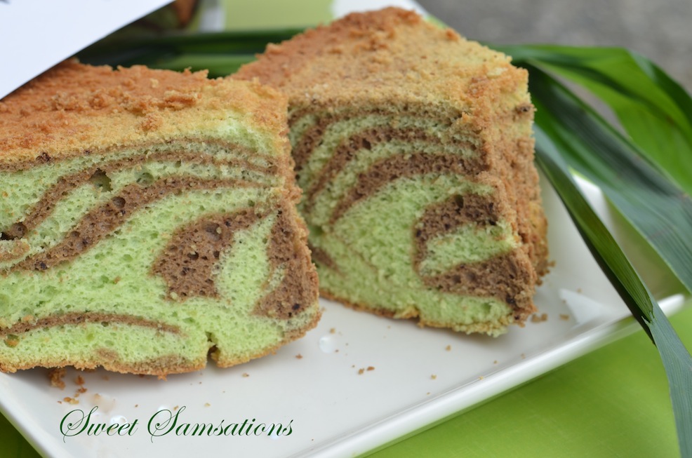 Sammie..I have been dying to make some kind of cake or dessert using pandan leaves! Now I found ‘THE ONE’. What a gorgeous zebra with the green and brown and the chiffon is so perfectly fluffy! This needs to be pinned, pronto! 🙂